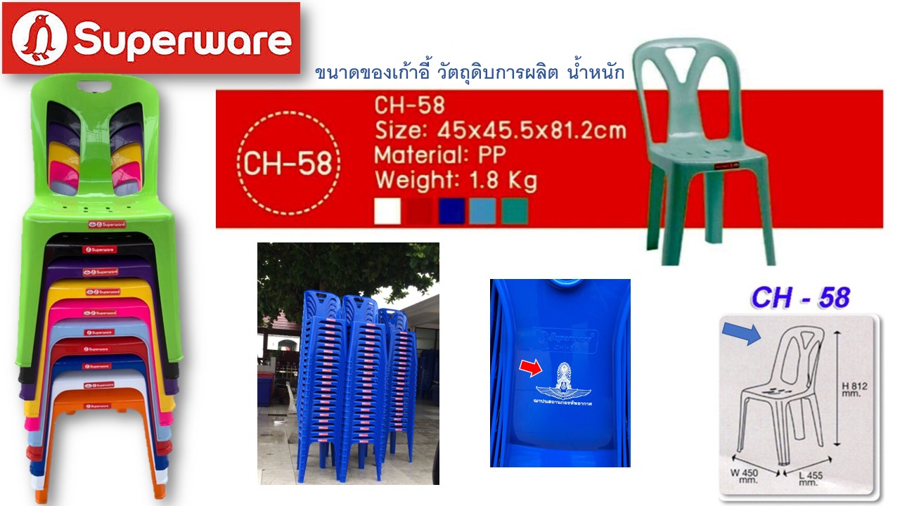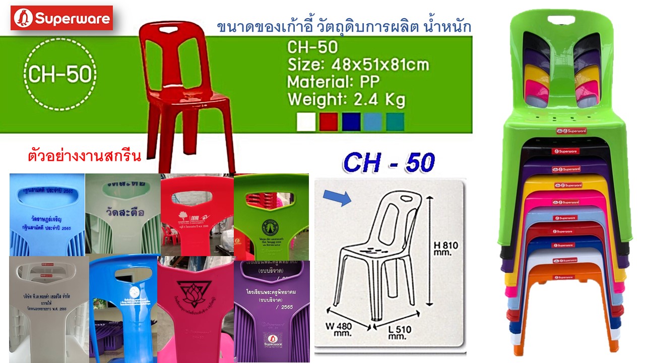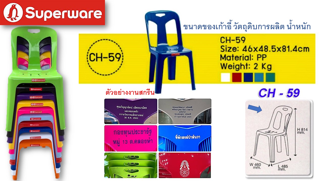 เก้าอี้ พลาสติก พนักพิง เก้าอี้ซุปเปอร์แวร์ Srithai Superware เก้าอี้พลาสติก Ch50 Ch45 Ch59 Ch58 เก้าอี้พลาสติกซุปเปอร์แวร์พร้อมสกรีนโลโก้ข้อความ
