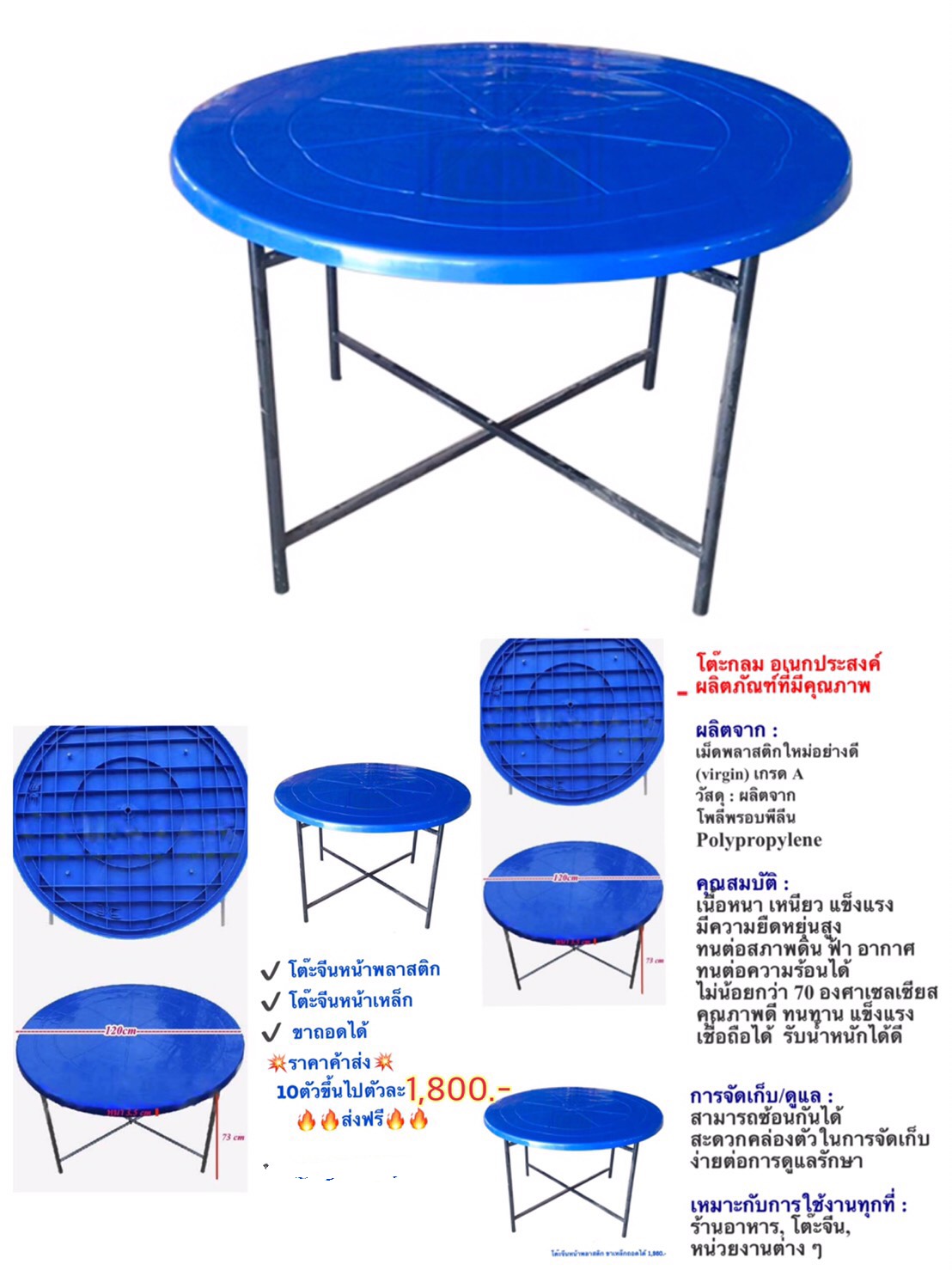 โต๊ะกลมหน้าไฟเบอร์ โต๊ะกลมหน้าพลาสติก โต๊ะกลมหน้าเหล็ก
